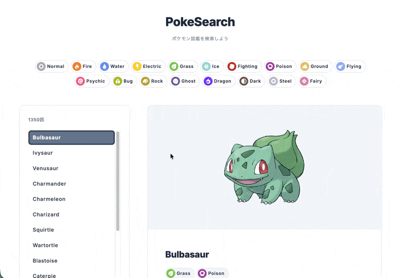 /pokemonで全ポケモン一覧を全件取得/type/{typeName}でタイプ別一覧を全件取得- どちらも Server Components で取得